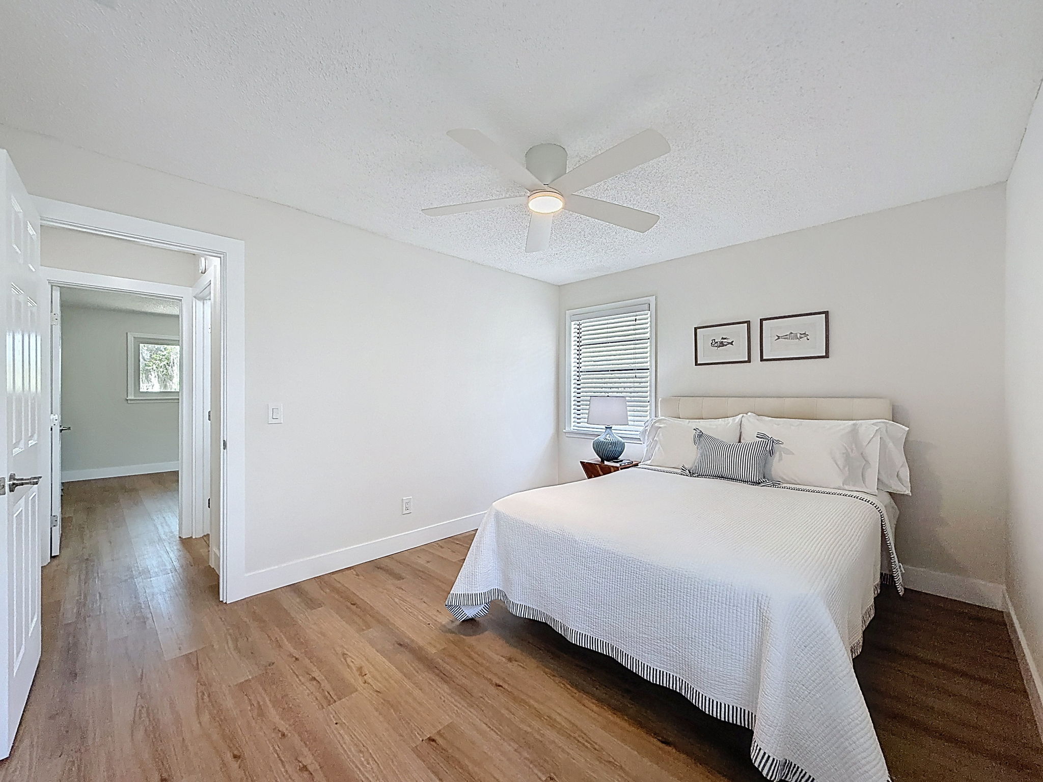 The interior has been thoughtfully updated with attention to both design and performance. Improvements include new plumbing, fixtures, valves, lighting, and electrical, along with durable luxury vinyl plank flooring throughout. The open floor plan creates a seamless connection between the living, dining, and kitchen areas, while the split-bedroom layout provides privacy for the primary suite.