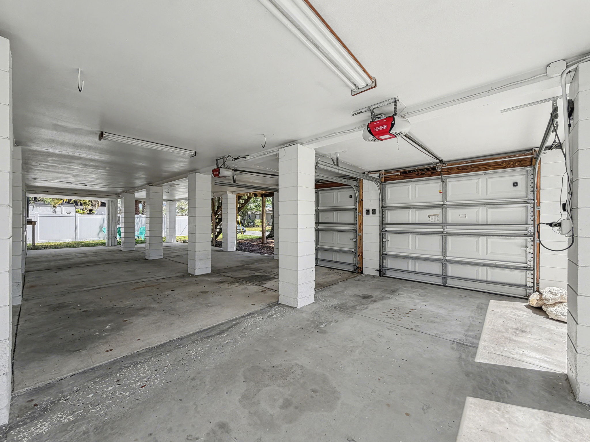 Outdoor living is enhanced by a large balcony that extends the main living space. The ground-level area accommodates two vehicles with additional space for storage, kayaks, paddleboards, and outdoor equipment, with the option to enclose for additional storage if desired. The corner lot provides added openness and flexibility.