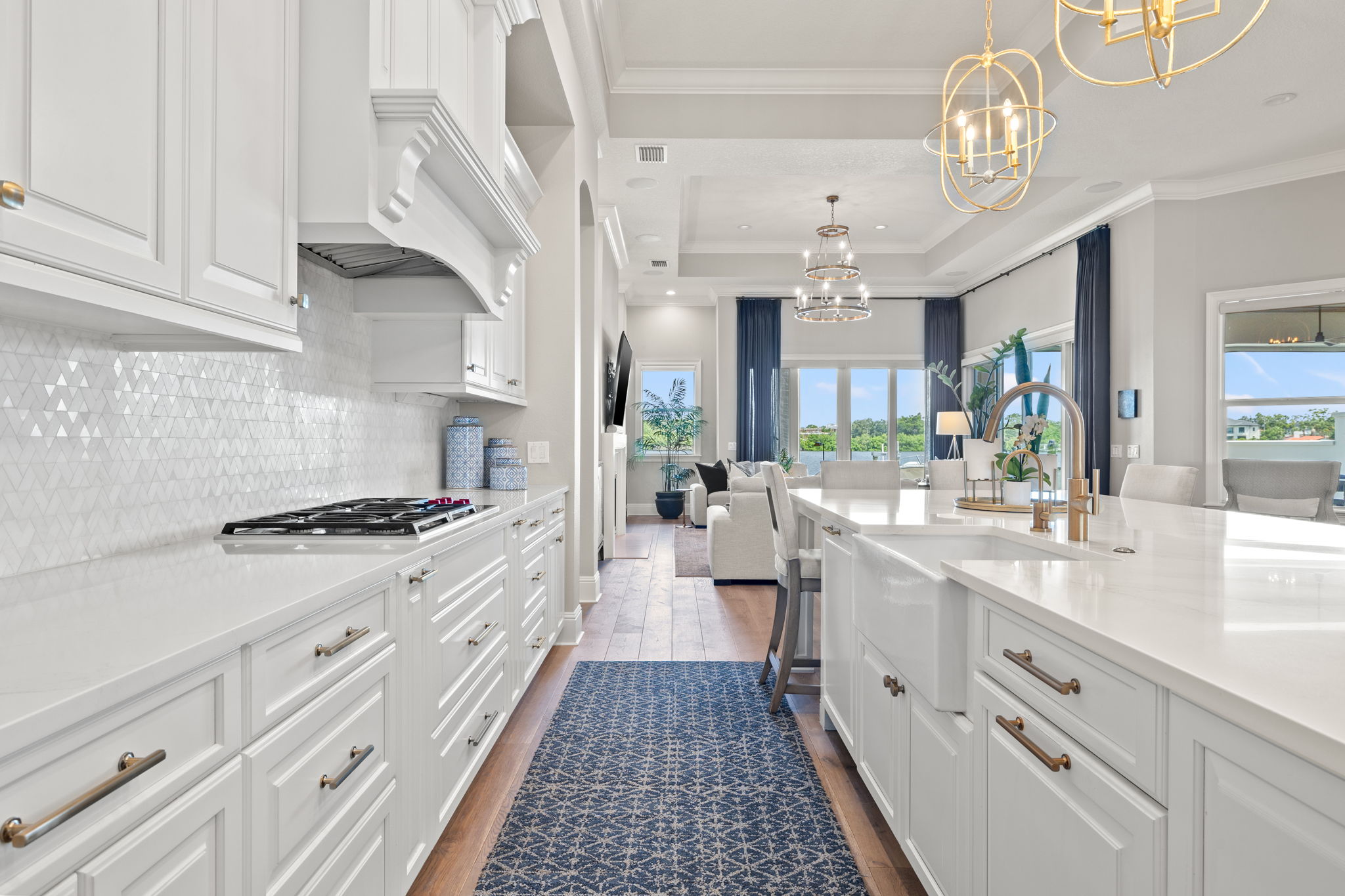 Inside, soaring 10-foot ceilings, hurricane-impact windows and doors, and a fully integrated smart-home system for lighting, sound, and video create a seamless living experience. Nearly every room captures picturesque water views, while the open-concept layout flows effortlessly between indoor and outdoor spaces.